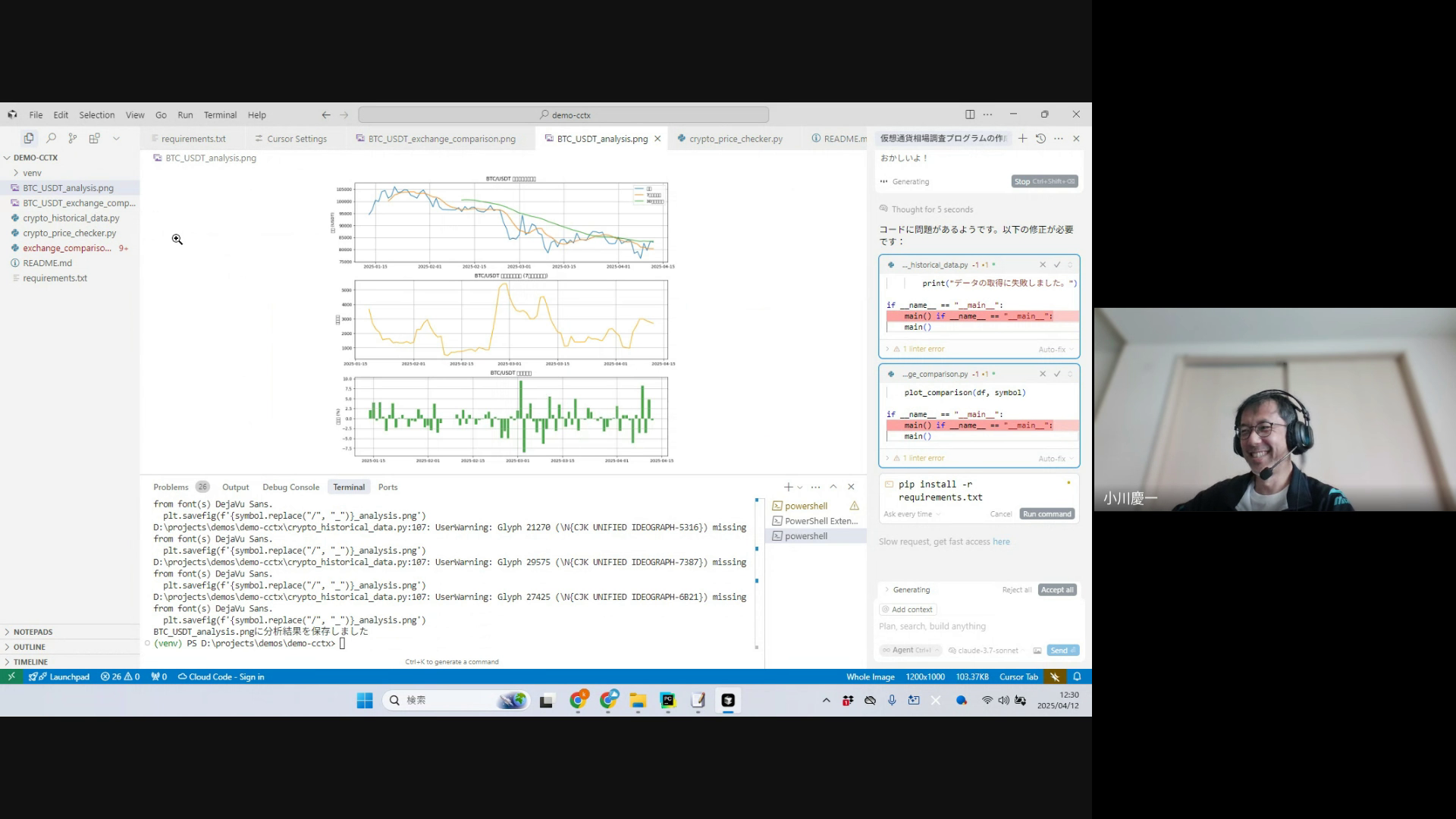 ほか、cursor無料版での利用制限、個人APIキーの設定方法など。