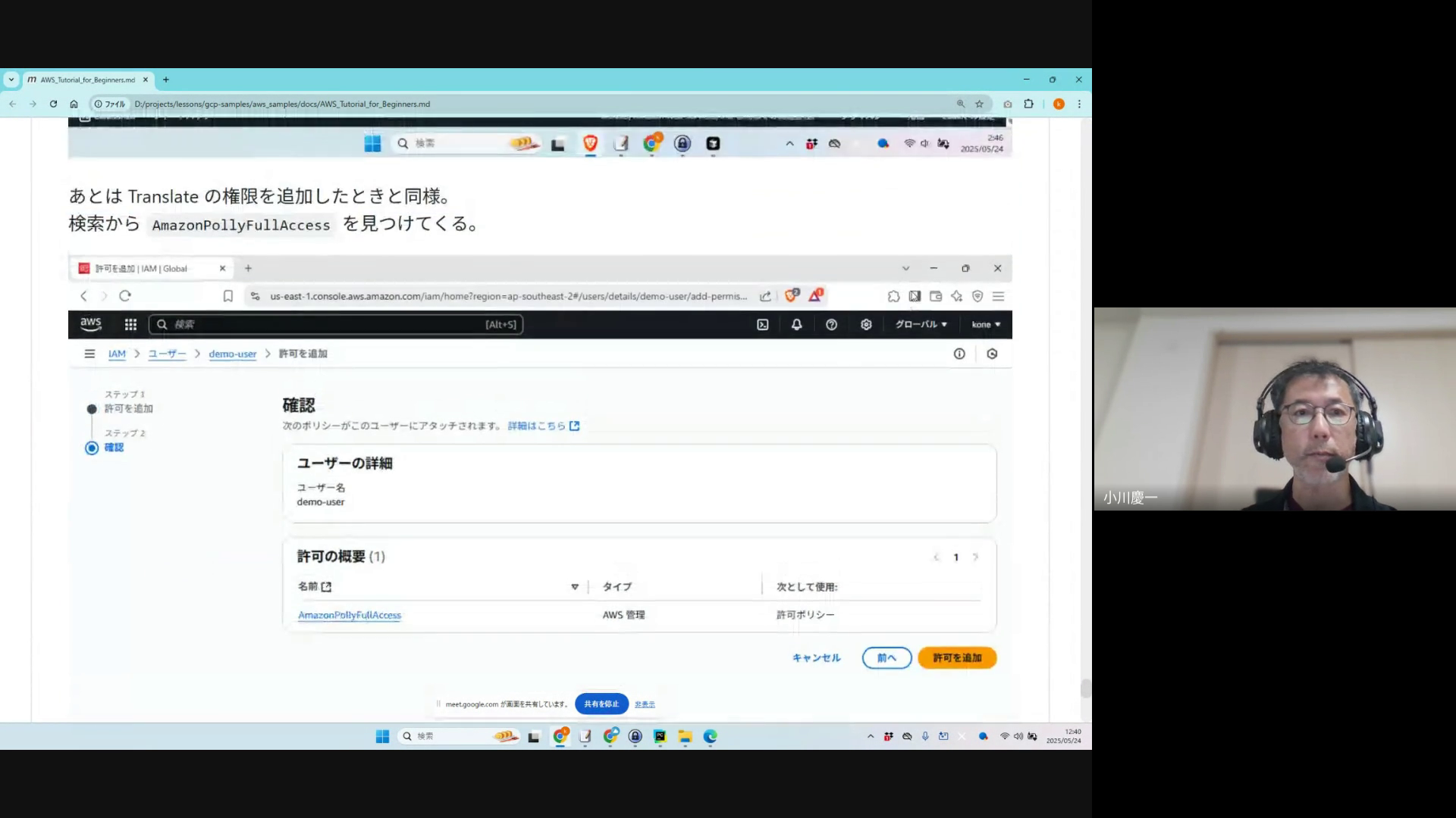 IAMに権限を追加しましょう。そして、改めてプログラムを実行してみます。