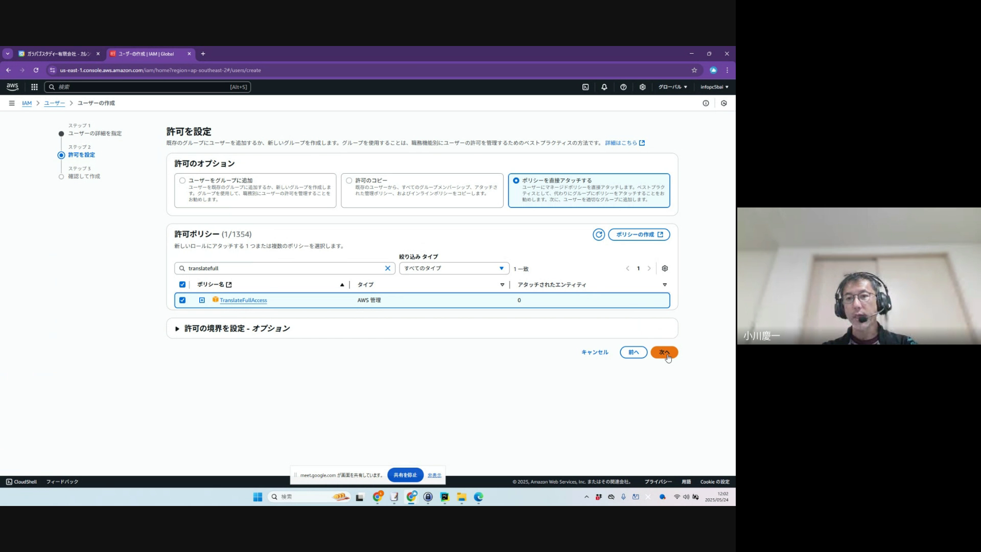アクセスキーを作ります。