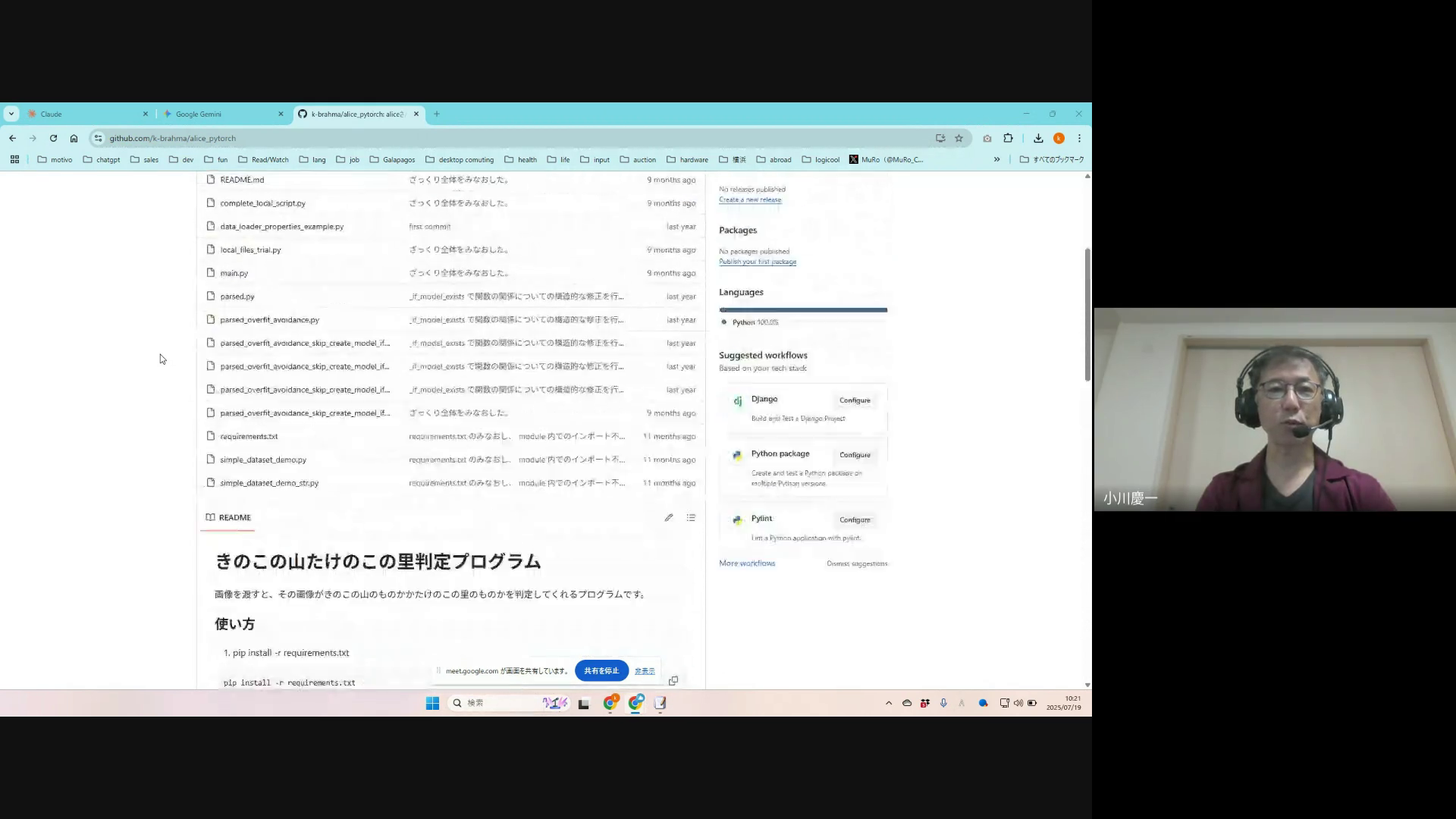 「画像解析から挑戦する」ということでしたので、関連の去年に実施した講座と関連プログラムをご案内しました。