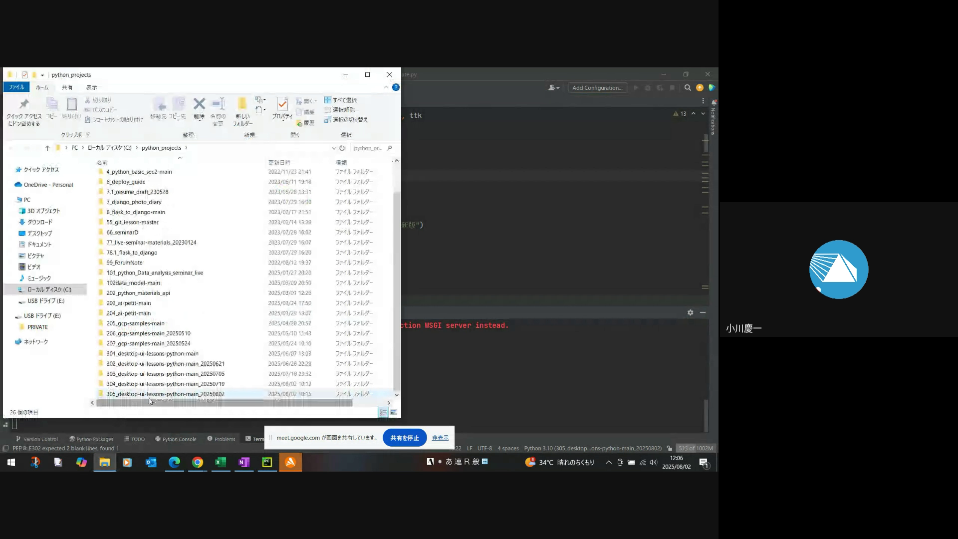 受講生による実習環境のセットアップ、Flaskサーバーの起動とアプリケーションの動作確認
