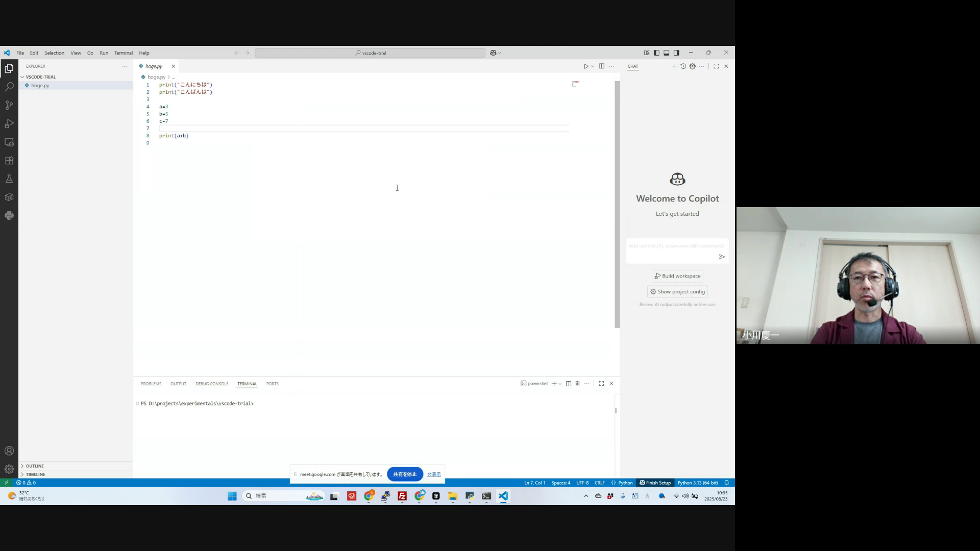 その後、別の受講生さんのみなさんの状況確認。従来推奨していたPyCharmから、VSCodeやCursorへの移行を推奨する理由として、仮想環境作成の簡単さと初心者フレンドリーな点を挙げる。