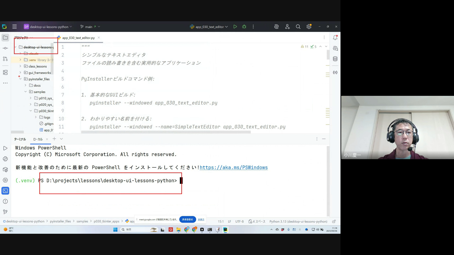 本日のハンズオンの説明。PyInstallerでのアプリ作成の様子をお見せします。