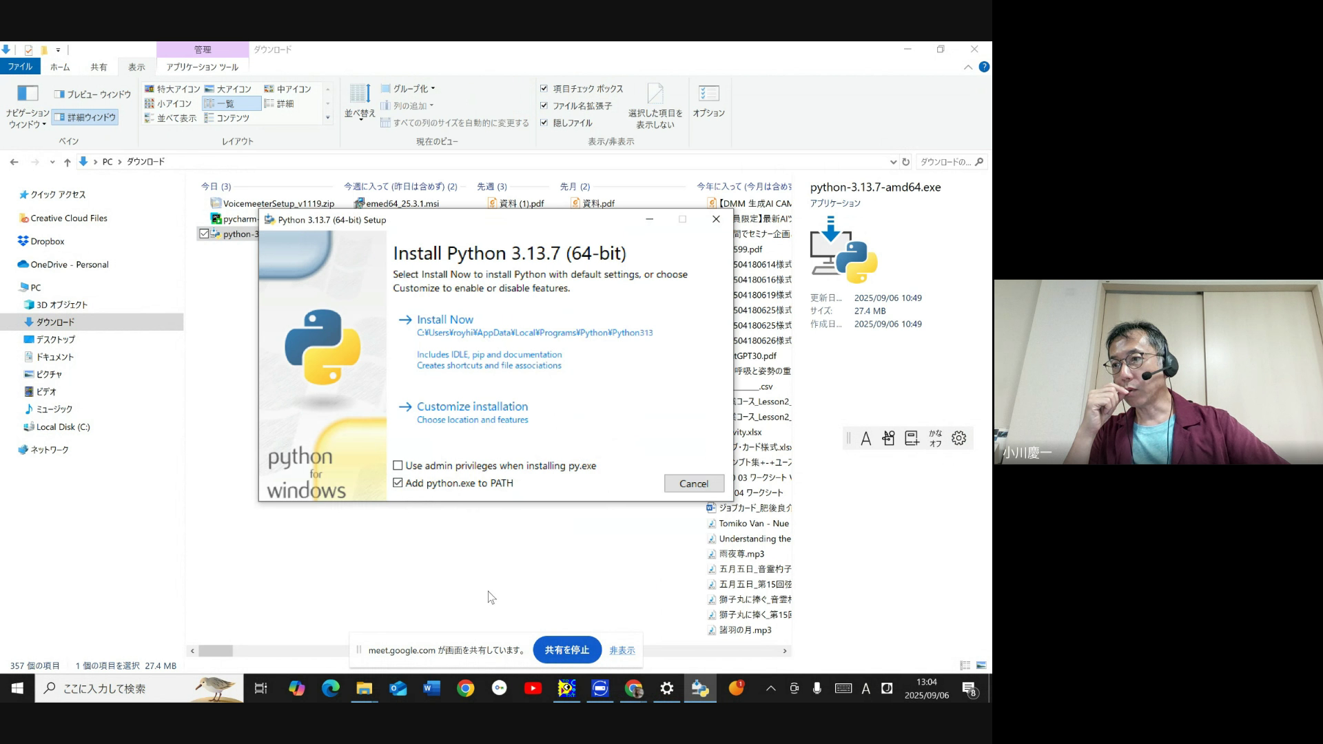 Pythonインストール時に環境変数への追加をしたことで解決しました。