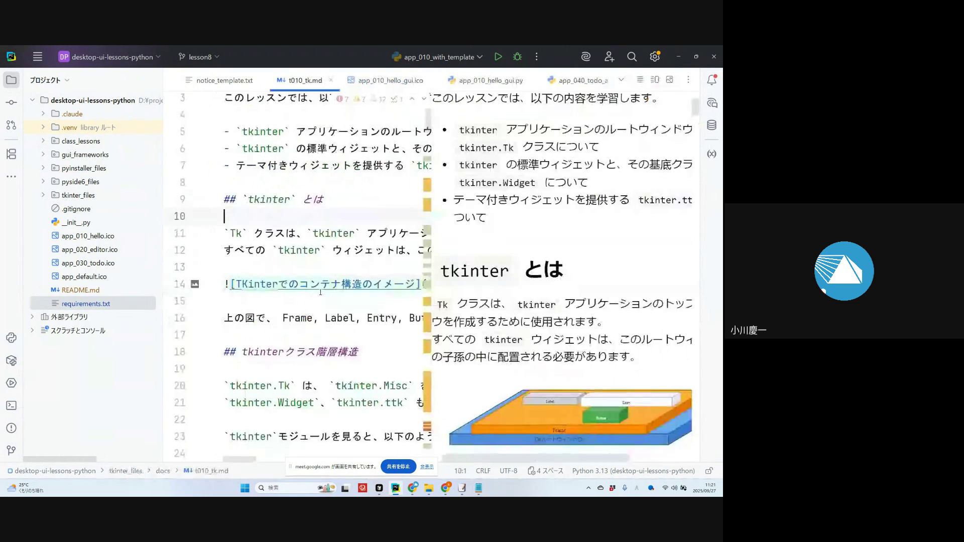 講座開始、参加者の環境確認、PyInstallerのインストール、基本的な操作確認