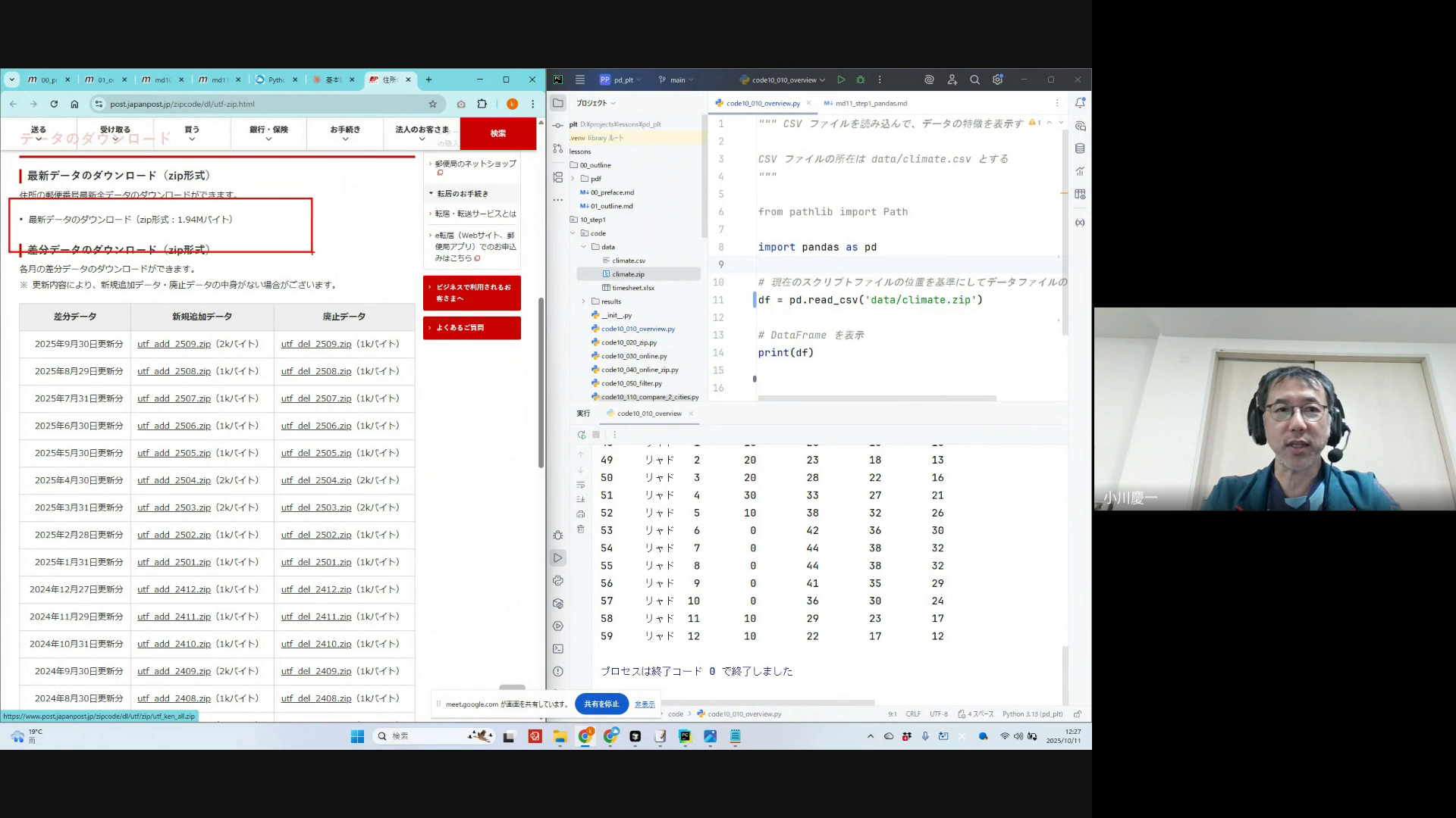 条件による行の絞り込み、CSV・Excel形式での保存方法、to_csvとto_excelの使い方。パスワード付きZIPファイルの扱い。