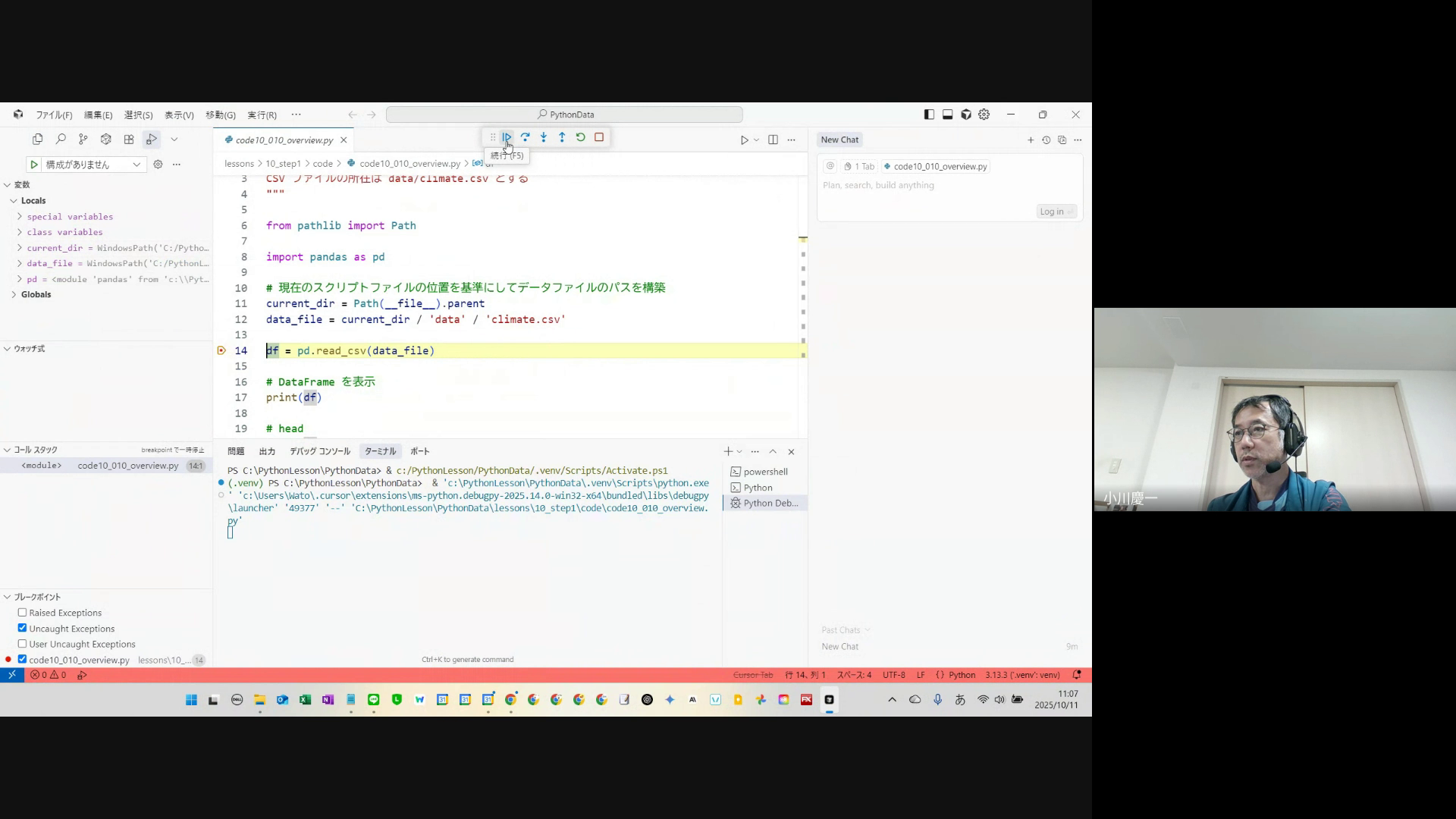 Cursor設定、プログラム実行テスト、デバッグ実行確認、個別サポート
