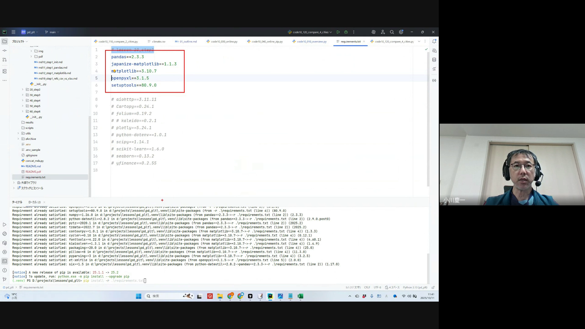 pandasライブラリの紹介、CSV・Excelファイルの読み込み方法、実行環境の説明