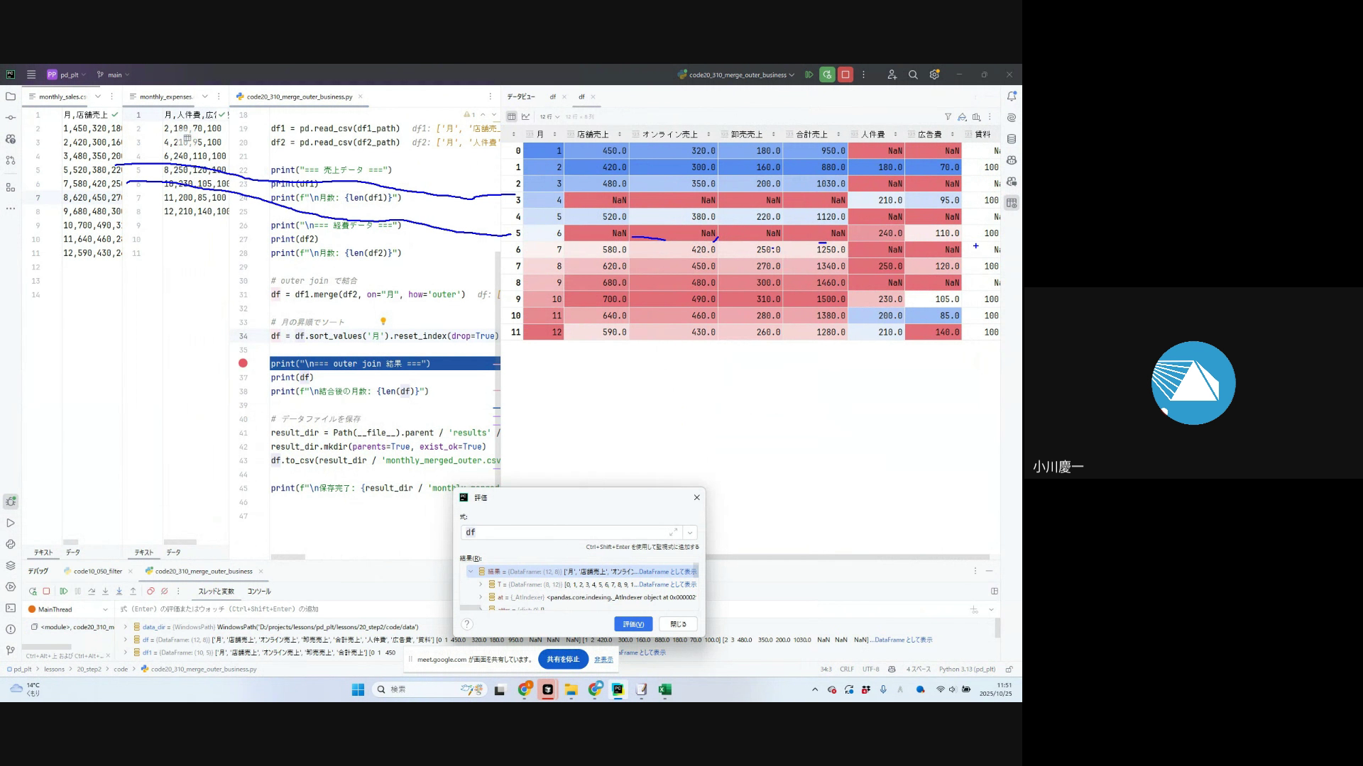 mergeメソッドの紹介、OUTER・INNER・LEFT・RIGHTの4つの結合パターンの概念説明