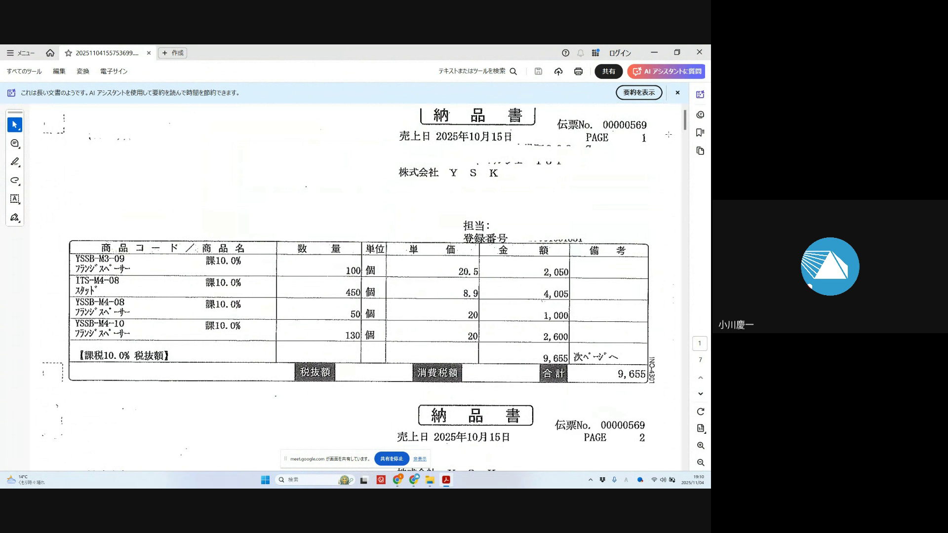 様々なフォーマットの納品書をOCRでExcelに変換したいという相談。市販ツールの状況や課題の確認、紙ベースの複雑なフォーマットの難しさについて議論