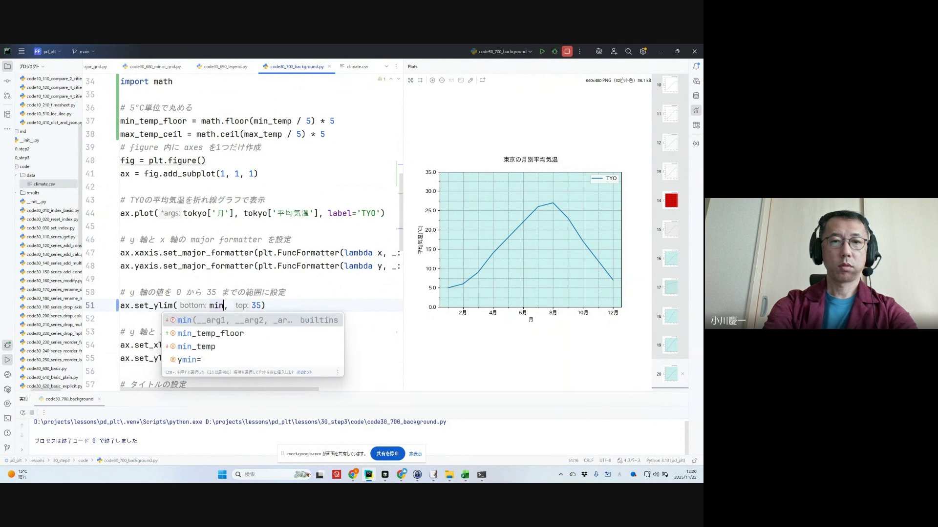 Y軸の範囲設定、動的な軸設定の方法について詳しく解説。受講生からの質問に答えながら、デフォルト設定と手動設定の違いやメリットを議論。