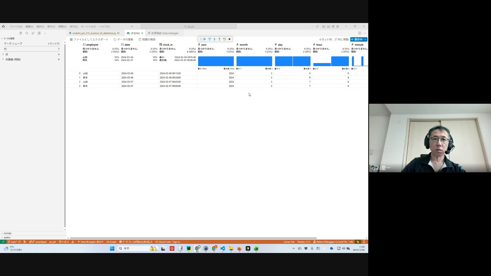 日付時刻データからの年月日時分の抽出、曜日の取得、タイムデルタ型の生成と活用方法、timedelta型のアクセサ