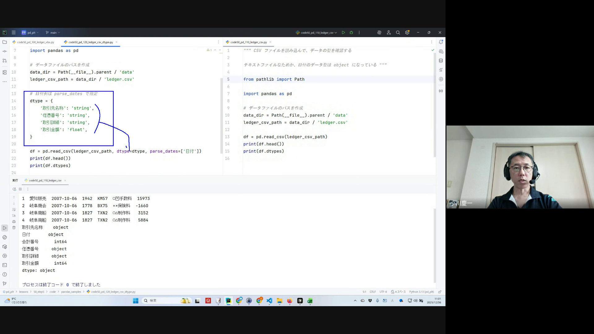 パンダスのデータ型の種類、ExcelファイルとCSVファイルの読み込み時の型の違い、型指定の方法