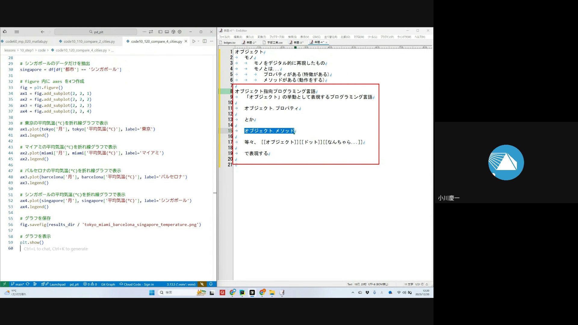 オブジェクトとメソッドの概念、プログラミング言語の歴史的変遷、グループバイとピボットテーブルの予告、休憩案内