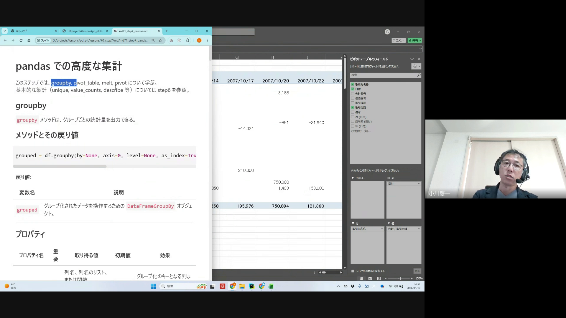 参加者のデータ準備状況確認、今日の内容紹介(groupby、pivot_table、melt、plotly、seaborn)