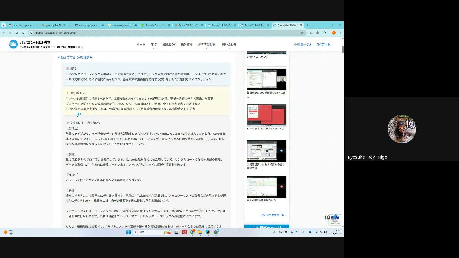 ジャムさんとオオトリワヒコさんのPython業務活用における課題について議論。エクセル出力方法の説明、業務での段階的な導入方法、自分用ツールから始める提案などの解決策を検討