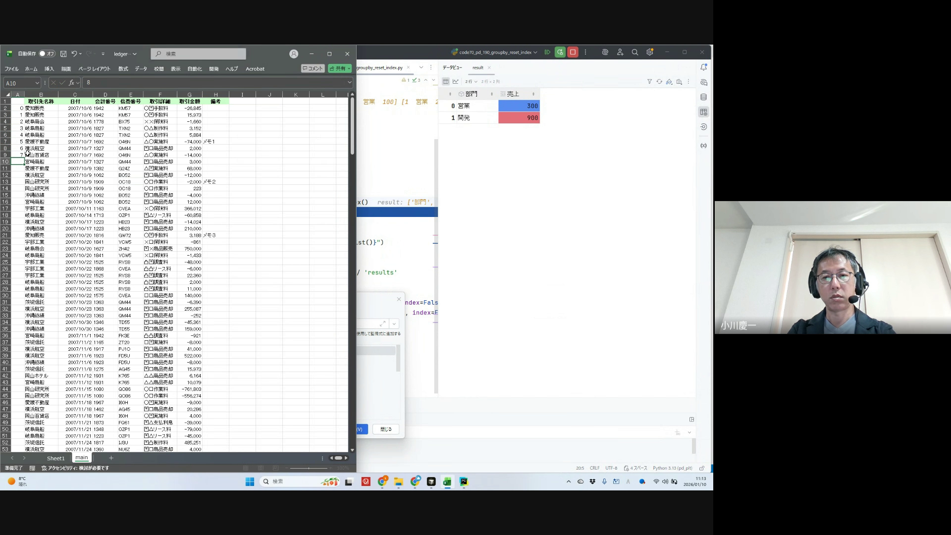 dropna設定、as_index設定、reset_index機能の説明と実習、参加者からの質問対応
