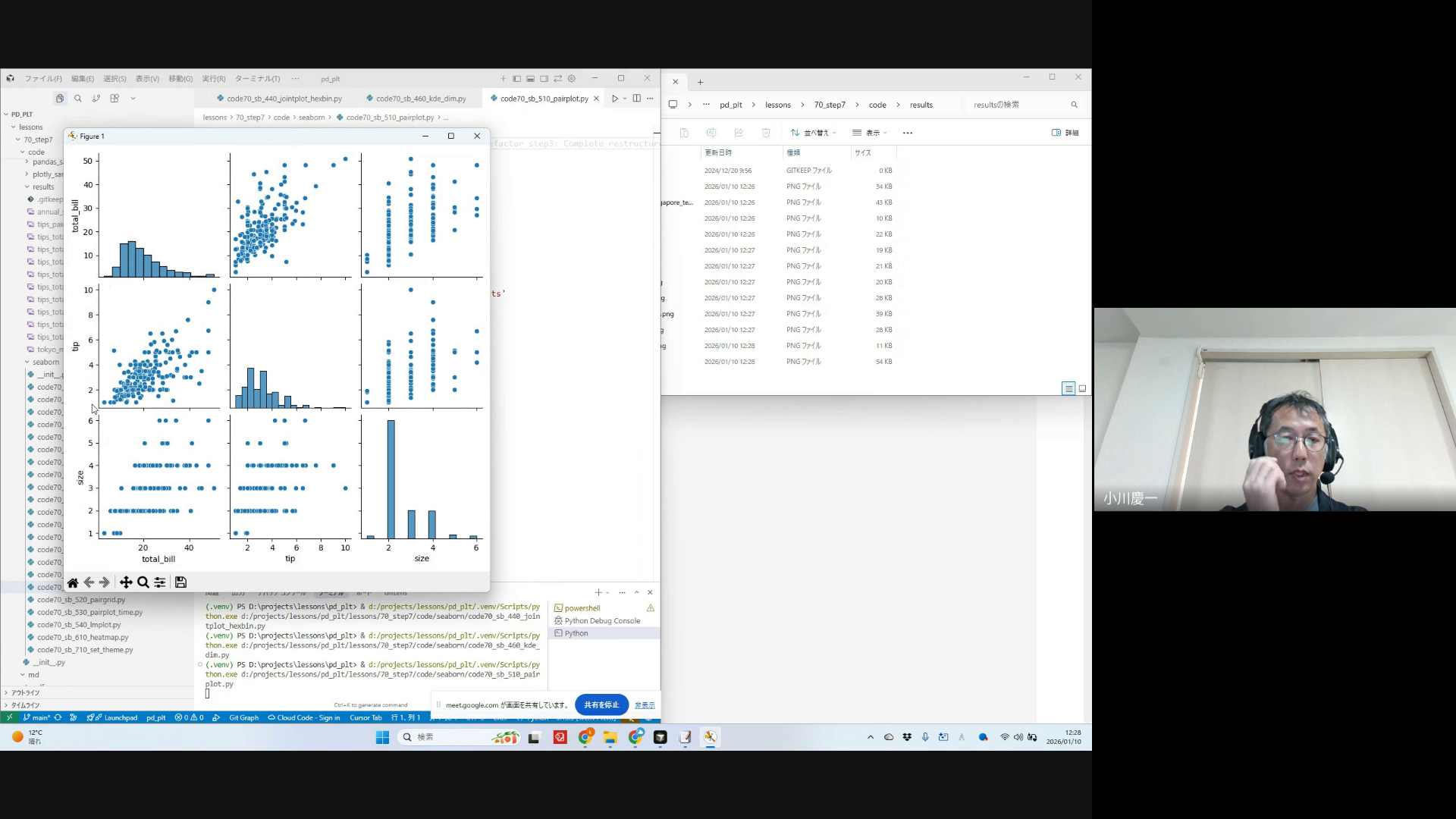 Seabornライブラリの紹介、統計的グラフの作成機能、内蔵サンプルデータセット(tips、titanic等)の説明と実習