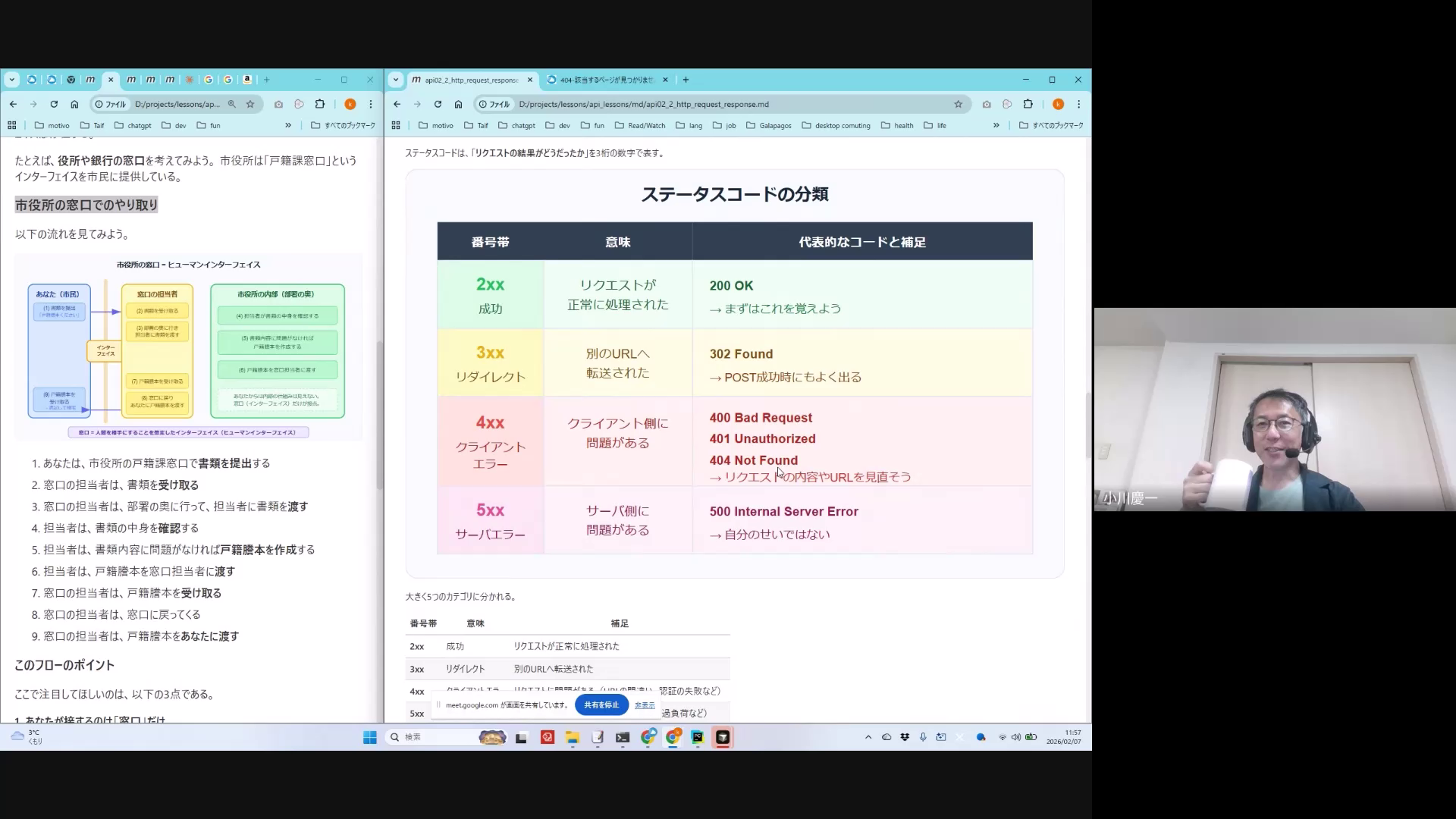HTTPリクエストとレスポンスの詳細、ヘッダーとボディの構造、ステータスコードの説明