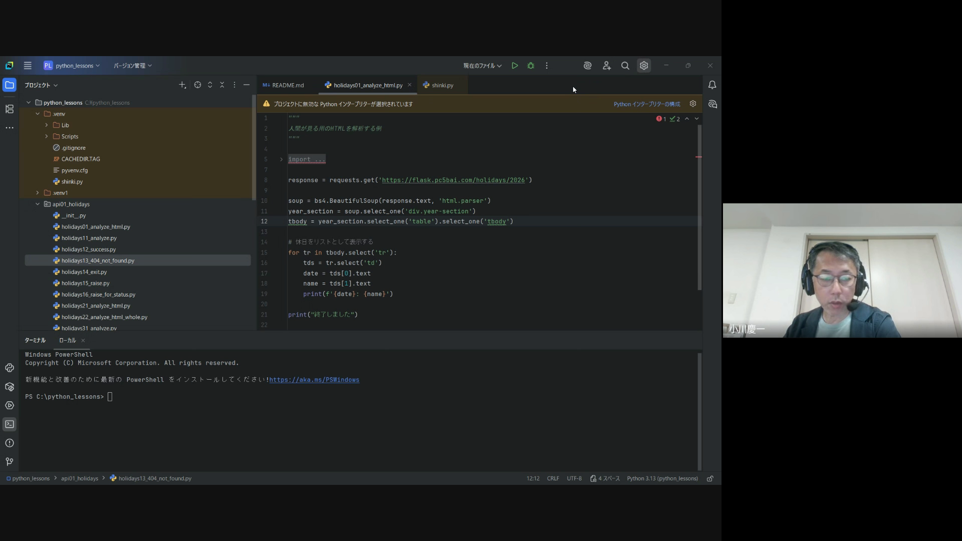 PyCharm利用者の設定トラブル対応、インタープリター設定、仮想環境の構築とライブラリインストールの支援
