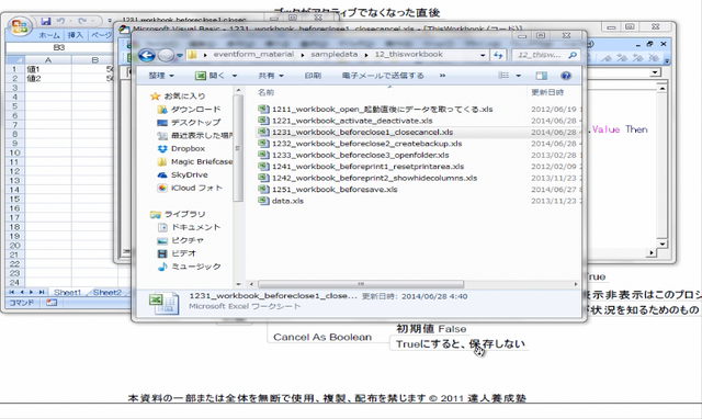 Workbook_BeforeCloseイベント その2