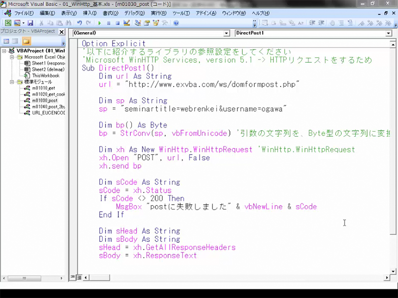 エクセルマクロVBA「Web連携」Microsoft WinHTTP Services 5.1_POSTリクエスト