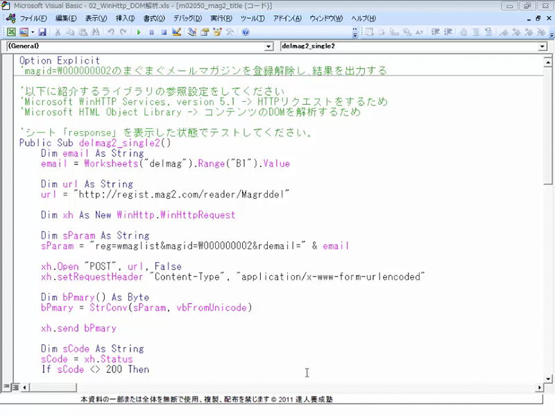 この動画を閲覧するには、「エクセルマクロVBA「Web連携」」をご購入ください。