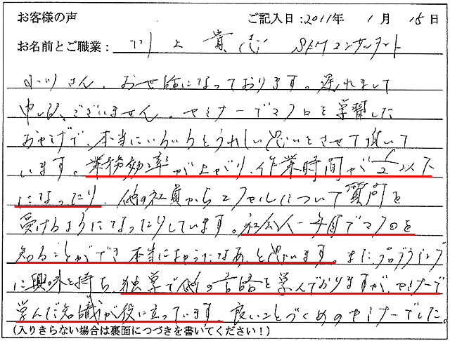 受講後、2日間で早くも結果を出す事ができました。