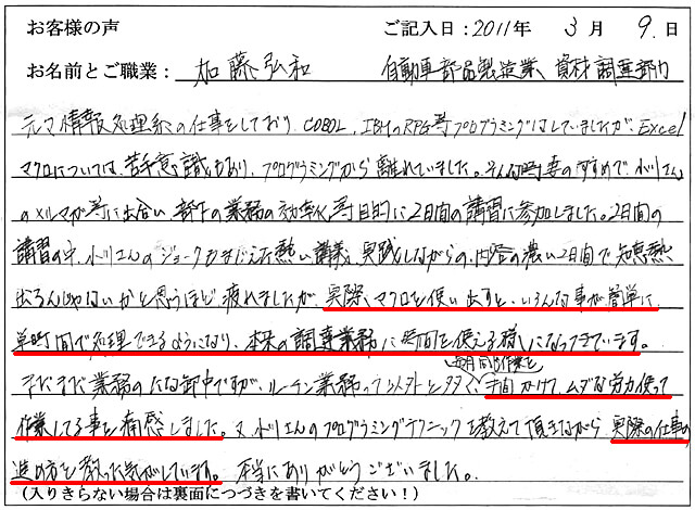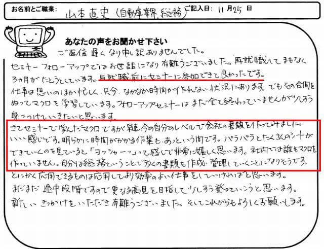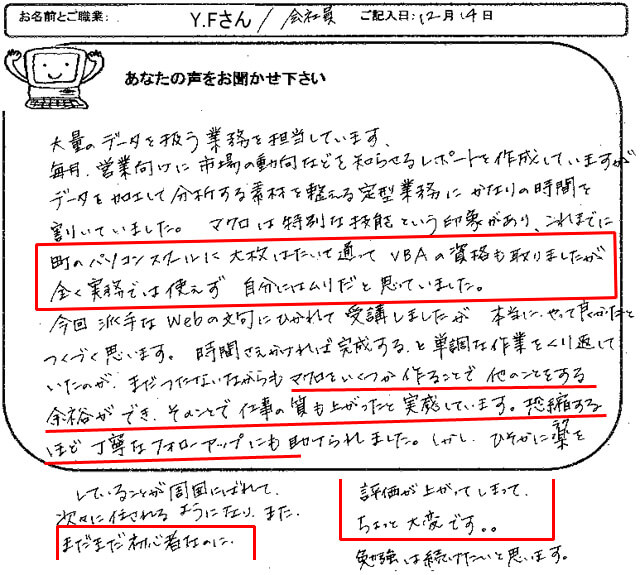 「マクロを学習したおかげで、本当にいろいろとうれしい思いをさせて頂いています。